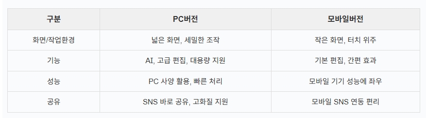 캡컷 PC버전 vs 모바일버전 비교